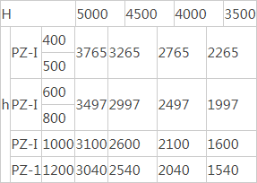 1、水泵房底板標高和水倉(或配水巷)入口標高之高差H與連接桿長度h值,本設計考慮四種情況,如下表所示:(單位:毫米)